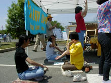 果然这一天为我们安排了一个十分宽敞的位置。我们有足够的地方摆放大法宣传板,搭帐篷和炼功。经过我们摊位的绝大多数人都高兴地接过大法资料,很多人当场要求学功,包括华人。大法弟子们耐心地向人们介绍着大法和在国内遭迫害的真相。