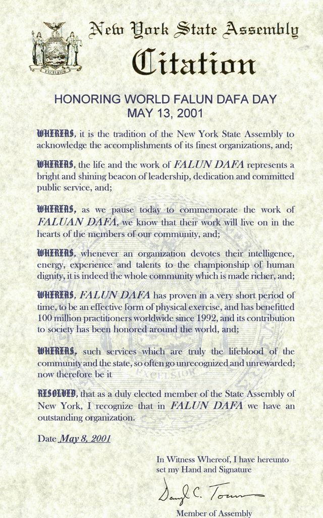 大法弟子:丁思源 施天清 杨小琴 姜淑英 曾毅 杨玉芳 陈桂华 吴玉林 罗惠 2001年5月22日