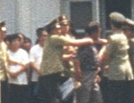 吉林省长春市朝阳沟二大队被非法关押的大法弟子李民与另三名功友,在4月30日有300人的"揭批会"上,主动制止邪恶,站出来阻止,有效的制窒了邪恶,但遭到了管教的十分残忍的毒打。据知情者说,李民头部被打变形,面目无法辨认,其它三名功友均遭到了不同程度的毒打,并被拖至会场。所长扬言:谁不转化这就是下场。