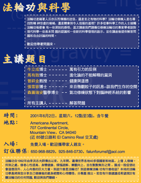 旧金山湾区法轮功与科学研讨会通知