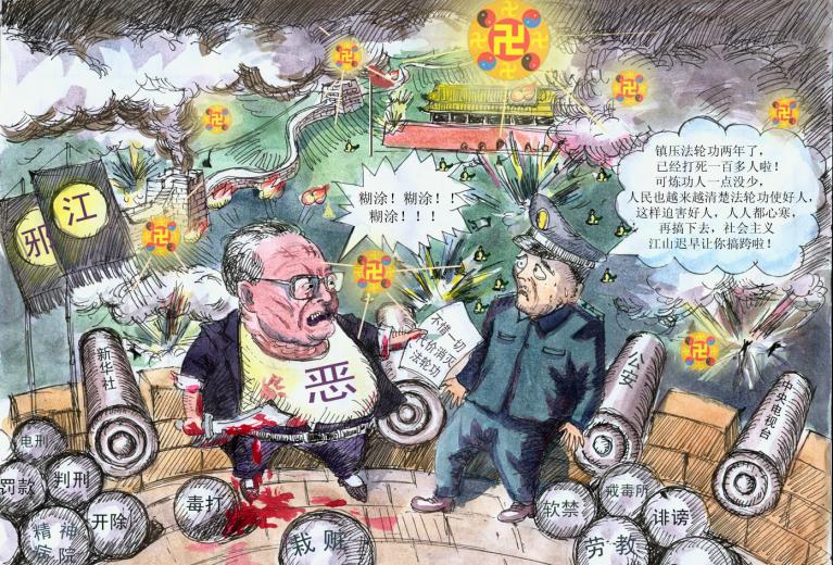 漫画:公安 vs. 江泽民:社会主义江山迟早让你搞垮!