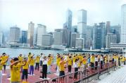 在湾仔伊馆旁集体炼功