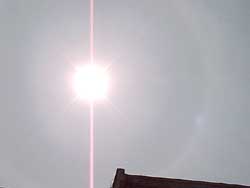二00一年五月三十日,烟台上空出现双日环奇观。中午十二点三十分钟左右最清晰,直径约十几米,据笔者观察,至下午十四点三十分左右渐弱直至完全消失。