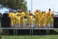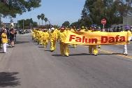 6月2日的清晨,天空湛蓝无比,位于旧金山湾区东湾的圣里安朱市迎来了一年一度的樱桃节大游行。一大早,空气中洋溢着欢腾的喜悦,初升的夏日透过这喜庆,照在了来参加游行洪法的屋仑市和圣里安朱市的学员的黄色的炼功服上,份外的醒目。