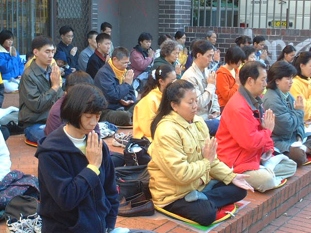 120多名悉尼大法弟子於当地时间7、8、9点正,在中国驻澳总领馆前,悉尼偏远地区伍龙岗、蓝山地区的大法弟子也於同一时间在当地炼功点上发正念。学习了师父的新经文《不政治》及读了明慧网最近登载的大法弟子助师正法除恶修炼体会文章後,有些长期没有出来的大法弟子,也纷纷走了出来,投入到滚滚的正法洪流之中。在中国驻澳总领馆前发正念的弟子中,有老弟子,也有刚得法不到一个月的弟子,和得法才2、3个月的弟子,也都走出来参加总领馆前的集体发正念活动。