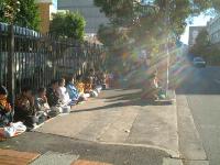 悉尼大法弟子在中国领馆前发正念时的奇景七彩阳光