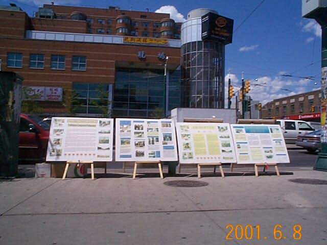 师父在今年加拿大法会讲法中告诉我们:“而在这场邪恶的破坏中,华人是受害最深的。”法会以后,多伦多弟子加强向华人洪法讲清真相,把在中区唐人街一周三次〔星期五,六,日〕的洪法活动改为每周七天,每天从中午12点左右到晚上7-8点,摆放大型大法图片展板和派发大法资料及征集签名。