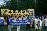 1. 中国大使馆前2. 在市中心3. 穿过市区的洪法游行4. 市区广场的集体炼功