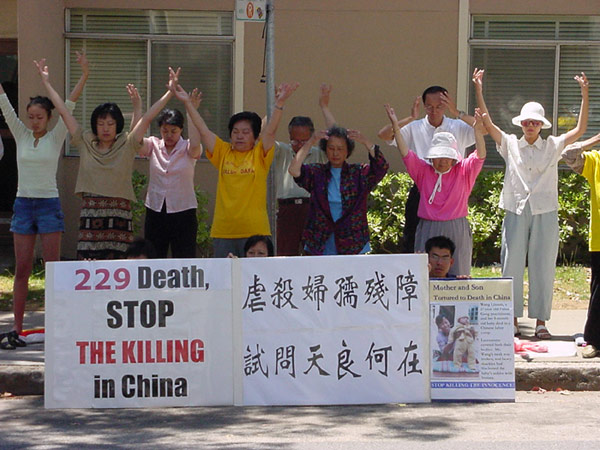 法轮功旧金山中领馆前紧急记者招待会 抗议血腥残杀升级呼唤世人关注