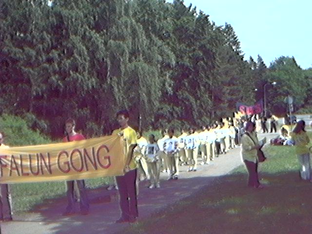 之后大家自动排成两人一排的游行队伍,将SOS和停止迫害法轮功等的大横幅展现在斯德哥尔摩市中心的街头上。数以万记的瑞典人看到了法轮功真象,多数人拿到了紧急救援法轮功学员的材料,大家纷纷签名,愿意帮助法轮功学员。学员们看到了他们善良的心。
