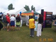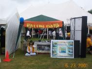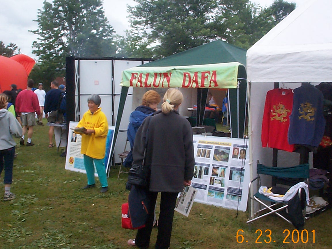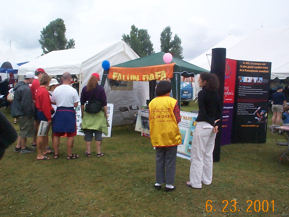 西人学员(60多岁)马克思站着发了一天报纸。他的腿里有钢钉(战争时受伤),“这么多人得闻法,我很高兴。”他说。简在我们炼功时在会场解说。她说这是去我怕心的。大家为他高兴。两天发生太多的故事。我们感到整个节日现场都在我们的场中。功友们演示时感到场很强。有位西人学员刚到公园门口就感受到强大的能量场。