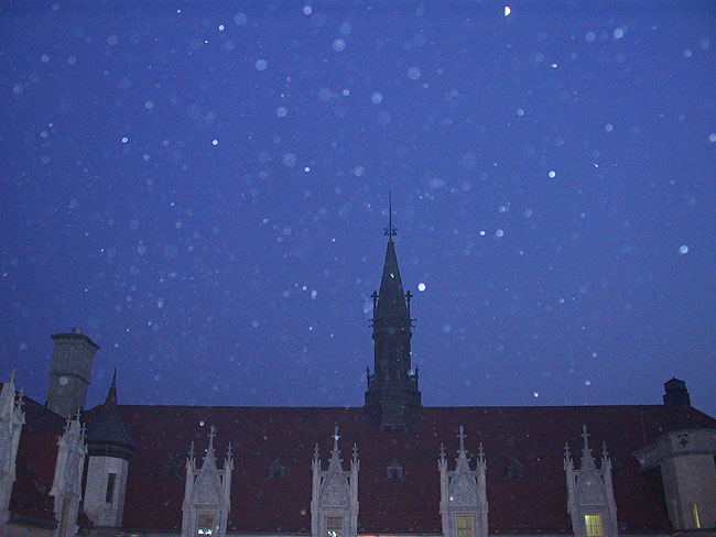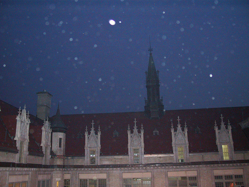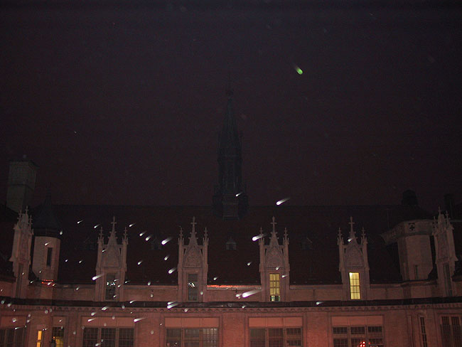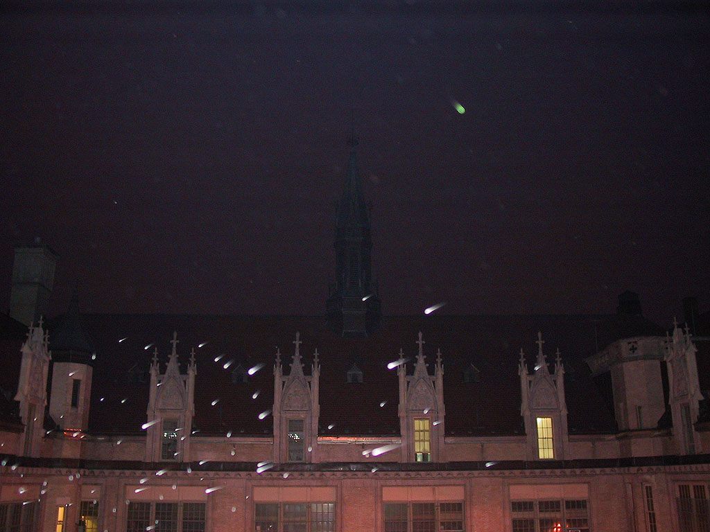 2001年6月23日和24日的那个周末,我参加了2001年芝加哥修炼心得交流会。在会场上,我的相机拍到了一些法轮。会后我回到纽约的住处,其后几天我试着拍摄了一些夜景照片,结果惊奇、欢悦地发现空中有成百上千(或者数不清)的法轮!
