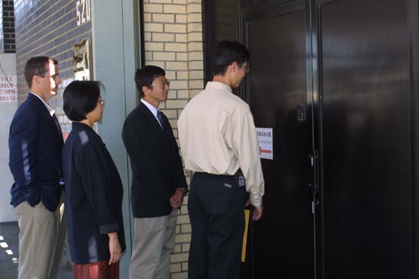一学员在记者招待会上宣读了法轮功学员的声明之后,四名学员前往领事馆向总领事递交呼吁信。一学员向领馆门口接待员讲明学员的来意后,被告知需要等候他来请示。等候许久后,接待员改口说领事不能接信,他也不会请示。学员再次同他解释了学员递信是海外中国公民在履行公民义务向政府反映心声和递信的目的,而接待员一再拒绝。在场的记者问他拒绝接受法轮功学员呼吁信的决定是领馆规定的还是他个人的,该接待员只回答他是在履行公务。