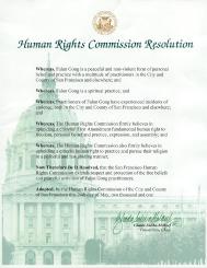 加利福尼亚州旧金山市、郡人权委员会决议尊重并保障法轮功学员信仰及和平炼功的活动