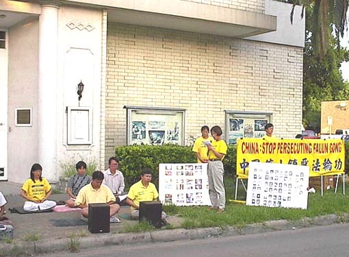 为此,休斯顿法轮大法学员于7月12日下午在中国驻休斯顿总领馆门前聚集,呼吁国际社会紧急救援,制止江泽民当局对法轮大法学员大规模虐杀的罪恶行径。