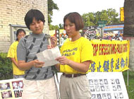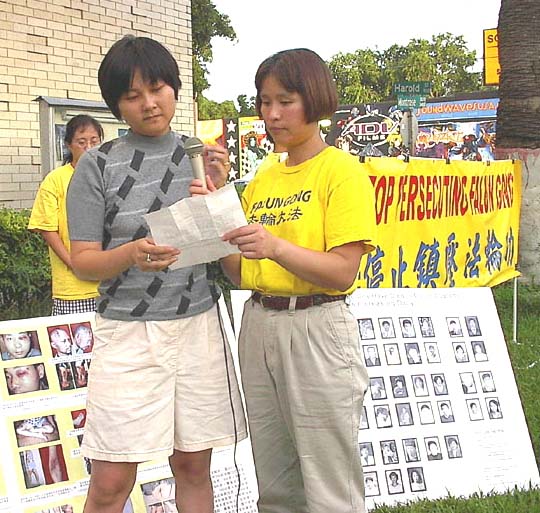 学员们透过高音喇叭宣读了呼吁书,并邀请了当地媒体,此外,学员们还进行了集体炼功和发正念清除邪恶,其间,得到了不少当地市民以各种方式的声援。