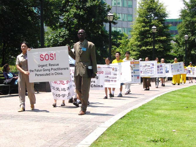 7月13日阳光明媚,在亚特兰大市政府提供的Woodroff公园,亚特兰大的弟子们举行了新闻发布会,宣布将开始为紧急营救在中国受迫害和被虐杀的法轮功学员的为期一周的由亚特兰大至华盛顿特区的长途车队路程。