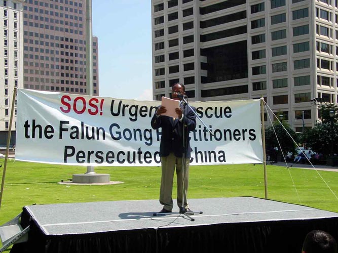 国际特赦组织的Derrick Kayongo先生到场为新闻发布会致辞,表示了对中国大陆酷刑的反对。