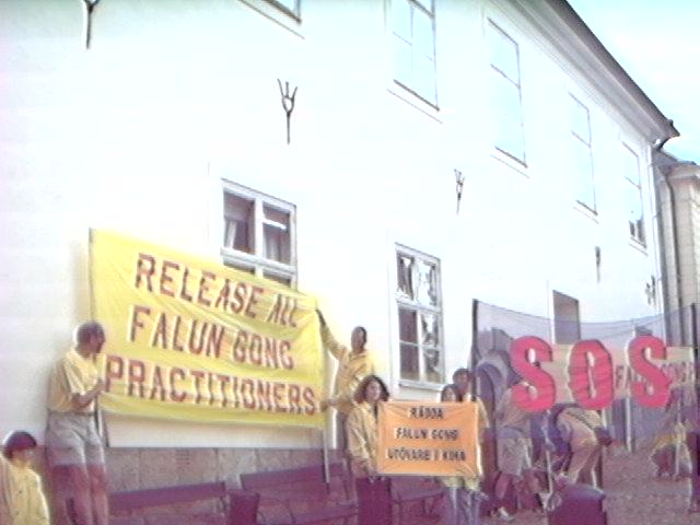 10点30分,瑞典学员在此公开答记者问,将我们长途步行的原因及目的向广众宣讲。来自Falun的社会党专家Ingalill Person 宣读了她支持法轮功的演讲。多家电视台和报社对此全球性紧急救援行动及时地进行了专题报道。