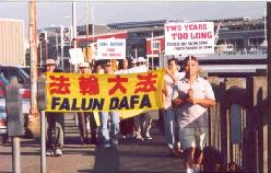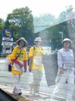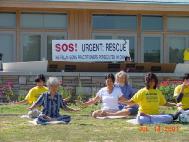 7月16日我们一行20人正式出发。在这一行人中,有四位年已花甲的老人,有年近8岁的儿童,有好不容易才积攒了一星期休假的上班族,有年轻的母亲。我们为了什么呢?一位学员说,江泽民集团阻挡真相的传出,我们做的就是让人们真正听到了解正在中国发生的残酷迫害法轮功学员的事实真相,看到江泽民集团的这些惨无人道的禽兽行径,善良的人们怎么能不动心呢?更多人知道,更多的人支持法轮功,就多一份救援大陆受迫害弟子的力量,就多一份人间正义。