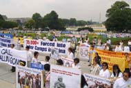 据自由亚洲电台2001年7月19日华盛顿消息:来自美国各地的数千名法轮功学员星期四聚集在首都华盛顿的国会大厦前举行新闻发布会,谴责中国政府两年来对法轮功学员的镇压和迫害。