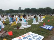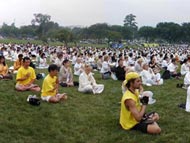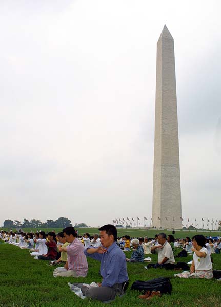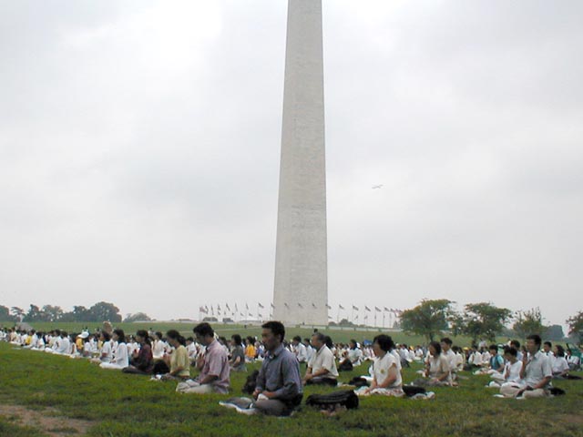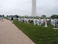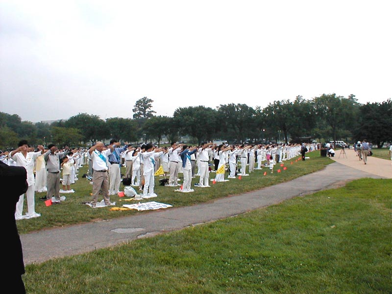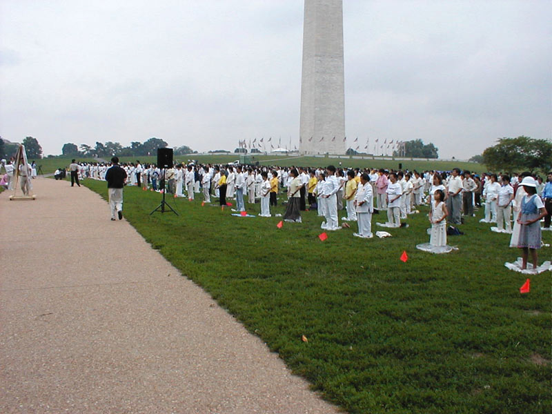 7月19日,清晨八点,以“十万火急:紧急援救在中国被迫害的法轮功修炼者”为主题的大集会以集体炼功拉开了帷幕。近两千名弟子从四面八方赶往位于华盛顿DC市中心的独立纪念碑。他们中有经1500里步行赶到华府的波士顿弟子,有从远自佛罗里达州一路骑自行车赶来的弟子,有从加州穿越美国的汽车旅行洪法弟子,更有世界各地的大法弟子关山万里,远涉重洋,大家一路风尘汇聚华府。