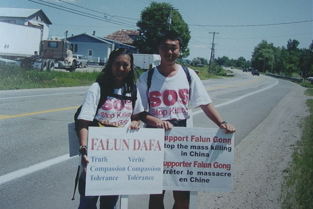 为了这个两周年纪念日,Concordia大学学生法轮功修炼者朱颖正走在从蒙特利而到渥太华(中国大使馆所在地)的征程。