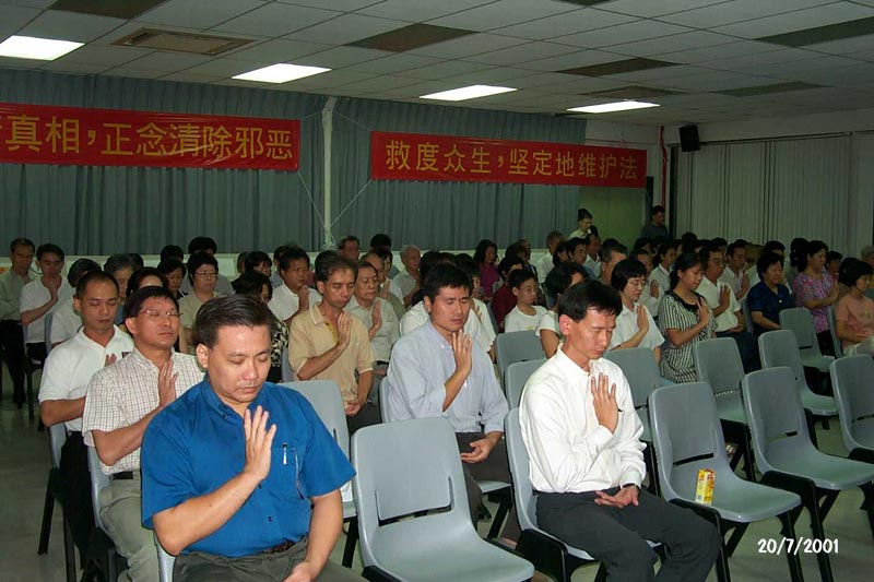 下午四点到五点,全体学员在市民广场席地而坐,在“普度”“济世”音乐声中盘坐,默默地悼念被迫害致死的255位同修,学员朗读了怀念同修、谴责邪恶、唤醒世人的文章。活动结束后,全体学员三发正念,再次清除邪恶。晚上学员们在一起就正法期间如何发挥正念的威力和作为海外弟子如何在讲清真象的同时做到“不政治”,展开热烈的讨论。