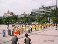 今天上午(7、20)来自日本东京、大阪、广岛、长野、新泻、山形等地约70多名学员聚集在日本东北重镇仙台市,举行了抗议江泽民集团暴行、SOS紧急救援国内受虐待学员的一系列活动。早上五点左右学员们就开始在仙台著名的市民广场布置法轮大法图片,准备在日本举行的第二期法轮大法正法之路图片展。学员们纷纷积极参与,在八点半左右把要展出的图片安排停当,摆放好日、英、中法轮大法真象报纸、法轮功学员人权遭侵害的真象录像带和印有“法轮大法”、“真善忍”和日本法轮大法网址的书签、扇子等纪念品。学员们边布置边向路人发放报纸及纪念品。不时有人驻足观看,有人在呼吁停止镇压虐杀的签名单上签了名。九点全体学员在广场齐发正念,默念“法正乾坤,邪恶全灭”,然后炼习了五套功法。中午十二点半左右开始陆续有<<每日新闻>>,<<读卖新闻>>,<<产经新闻>>及<<河北新报>>等一些著名的日文报纸的记者到场采访学员。学员们向他们介绍了开展今天活动的目的,即向日本东北地区的人民介绍法轮功,同时呼吁日本各界本着同情和善念紧急救援中国受虐待的法轮功学员。记者们还向学员们询问了诸如有关江泽民集团为什么迫害法轮功等有关问题。他们说今天的消息明日即见报。