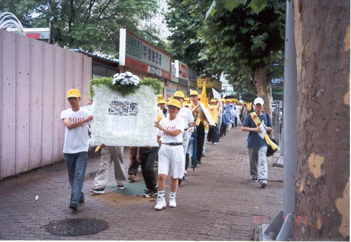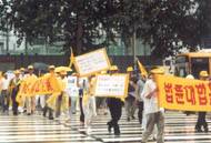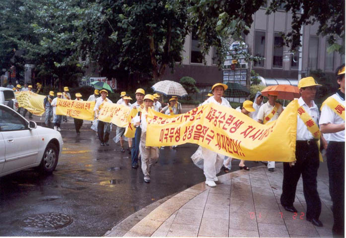 722 两周年韩国弟子在汉城风雨中游行正法侧记