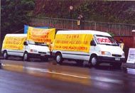 • 天安门广场上停着的准备押送大法弟子的警车