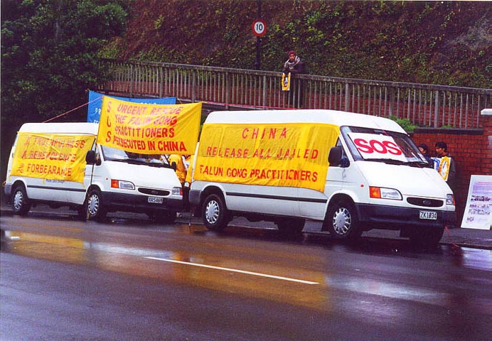 【明慧网2001年7月25日】7.20日九时正,三十多位来自英国各地区的大法弟子集聚曼城中领馆前,拉开了为期二天的在曼城和利物浦西的护法、洪法活动序幕。