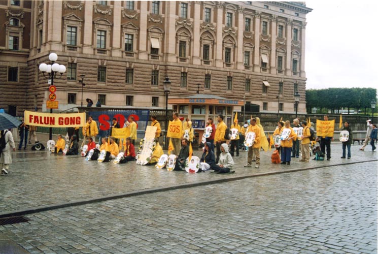 瑞典学员集体炼功抗议江泽民虐杀大法弟子