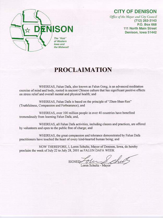 我支持法轮大法为获得自由所付出的一切努力,并祝祷中国和所有世界公民能够自由选择并享有宗教自由这一基本人权的那一天会很快到来。那是美国的先驱者们来到美国的原因,而令人伤心的是,在先驱者们冒险跨海来到美国的近四百多年后,自由对许多人来讲仍是可望而不可及的。