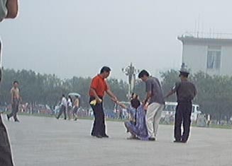 上面照片(图一至图七)中被抓大法女弟子才十几岁,两个便衣警察强拉着进入警车,第一张照片(图一)可以看到她被反扣着双手老高,警察对一个才十几岁女孩竟如此残暴!最后女弟子被送进天安门派出所,不知近况如何。