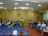 图 爱迪生市法轮功学员在市议会上陈述姐妹市─石家庄对法轮功学员的残酷迫害