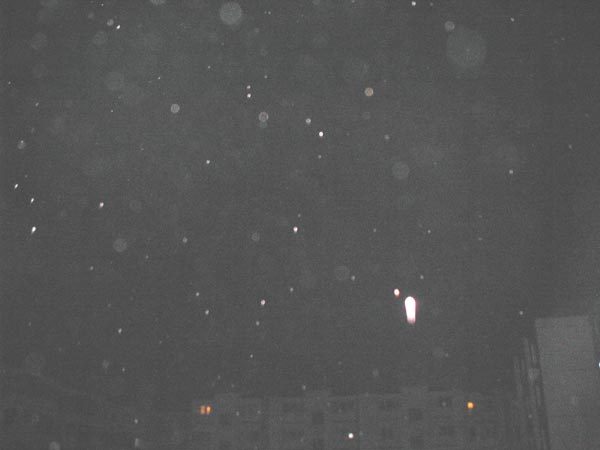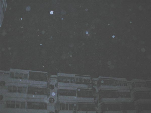 我在电脑上打开自己刚才所拍的照片,一幅幅奇异的景象展现在面前,虽然以前看过明慧上登过的漫天飞舞的法轮的图片,但是面对着自己几分钟前刚刚拍到的真实景象,我还是惊呆了。第一张p11是我刚出楼门时拍的,能看到对面住宅楼的影像,p12-p15当时都是对着天空拍摄的,则可以看到大量飞舞的法轮,有大有小,颜色各异,十分壮观,但是另一些我拍摄的地面的照片,却乌黑一片,什么也看不清,同样的时间,同样的光线,却照出了如此殊异的景象。此时外面雨已经下大了,我又拿着相机在阳台上对着天空拍了一些,见p21-p26(有几张有白色遮挡的物体是阳台的窗楣),时间是在8点46至8点52之间,9点左右,雨停了,p31便是此刻拍的,一场宏伟的战役仿佛已经结束。此时繁星点点又显露出来,北京夜晚的天空恢复了平静。