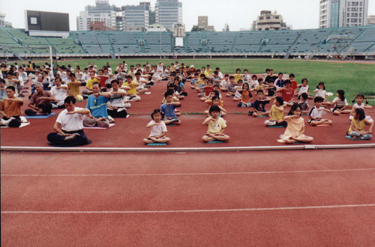 6月22日台中区交流会在体育场举行,晚上七点开始五十分钟的功法示范,很多小弟子也参与其中,而儿童班也在八点时,正式揭开序幕。