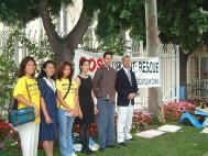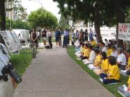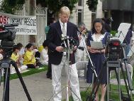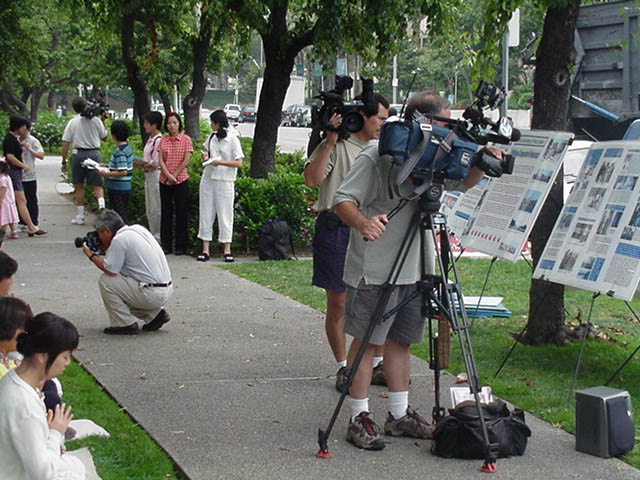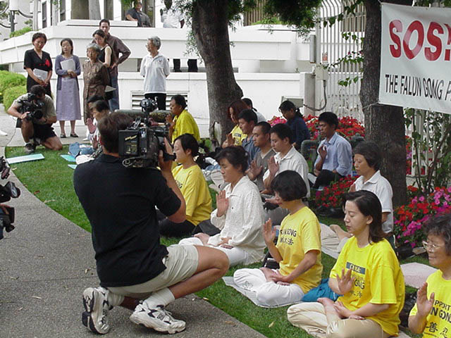 【明慧网2001年7月8日】2001年7月6日,南加州大法弟子于中领馆前举办新闻发布会,向媒体公布大法弟子将开车由洛杉矶前往华盛顿DC的计划。世界日报、星岛日报、KABC-TV,KTLA,MBC,FOX,KCAL,AP,CITYNEWS等多家主流媒体前来采访。