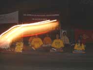中国领事找到的第二个借口是,我们的和平请愿妨碍交通,因为领馆前的马路川流不息,从领馆出来的车辆必然要经过我们介绍迫害情况的展板,司机有可能观看展板而忽略来往车辆,引起交通事故。这话听起来很有道理,可我向那位刑警局官员说明事实的情况是:来领馆办事的人都把车停在马路边上。从领馆出来的车都是馆内中国工作人员的,如果他们要看展板,那是他们自己的事,可不是我们的问题。