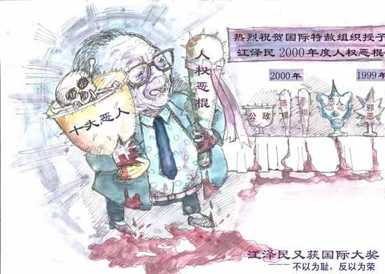 漫画:1、江泽民的美梦破灭;2、人权恶棍