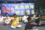 这项由美国法轮功之友发起的SOS声援大陆遭迫害法轮功学员行动,自今年六月二十六日「世界反酷刑日」开始在世界各地如火如荼地展开,台湾今天在北、中、南三个地区同步举行。
