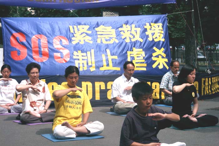 【明慧网2001年7月9日】中央社记者曾志远纽约七日专电,四位顶着艳阳、不畏风雨从波士顿步行到纽约的法轮功学员,今天中午在纽约中国驻纽约领事馆前的记者会揭发江泽民的暴行,他们希望藉着「SOS!紧急救援在中国受迫害的法轮功学员」步行活动,唤起世人对中共镇压法轮功暴行的关注与救援。