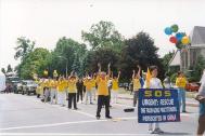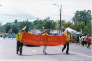 中午约12时,就在我们游行队伍准备出发时,天空中出现了以太阳为中心,外周为双环的彩色大法轮。学员们深受鼓舞,深感师父的慈悲,给大家安排这样一个机会,让这众多的非洲人能闻到大法,让大法弟子能在其中提高。数千份洪法材料及SOS传单在到达检阅台前即已发完。在检阅台前,应主持人邀请,法轮大法学员对大法及大法学员在中国受到的迫害作了简介,并呼吁人们伸出救援之手。学员们并做了第一套功法的演示。人们纷纷索取资料,询问在哪里可以学功。许多人希望下次游行再见到我们。看到这么多善良的人们,我们感到肩上责任的重大。