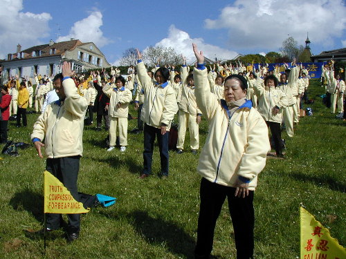 同昨天一样,很多路过的车辆都停下来,被这一炼功场面吸引住。并高兴地接过学员递给他们的资料。他们都已经从不同的途径听说过法轮功。现在又亲眼看到这种祥和的炼功场面高兴地说:“真好!”在日内瓦连续几天的活动已经使许多当地和邻近的人们进一步了解法轮功的和平性质与在大陆所遭受的非人道的对待。