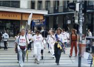 | 瑞士法轮功学员穿过日内瓦闹市区 | ||