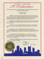 美国宾夕法尼亚州匹兹堡市市长汤姆莫菲2001年7月17日签署办公室公告,表彰为丰富他们的生命而修炼法轮大法的人们,并宣布2001年7月17日为匹兹堡市“法轮大法日”。