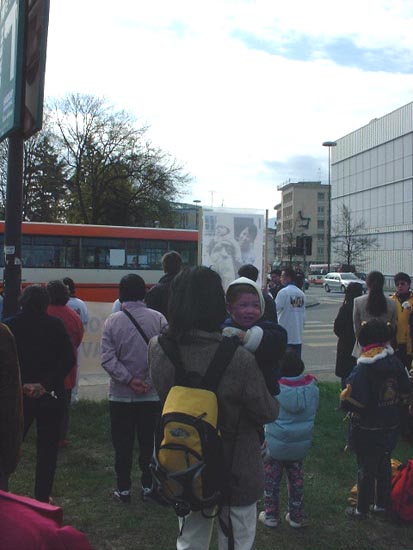 Jeff是位来自加拿大的十岁小弟子,已经修炼两年,英文<<转法轮>>已经读过好几遍。他说,这是他第一次来日内瓦。4月初听妈妈说要来日内瓦护法他觉得应该来,就要求一起来。开始爸爸怕他出来受苦,让他留在家,但看他态度坚决,就同意了。他和近千名大法弟子一起静静站立在日内瓦联合国大楼前的万国广场上,呼吁国际社会关注中国的人权状况。