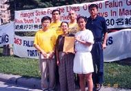 发起绝食静坐的六位法轮功弟子