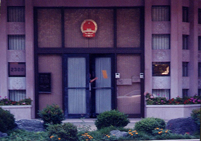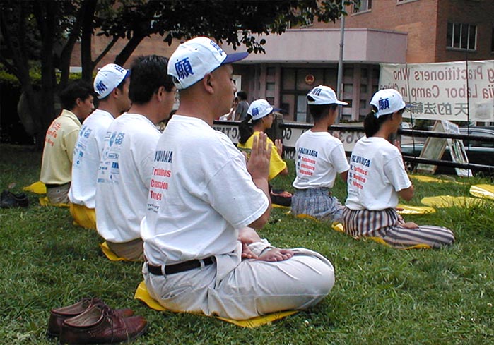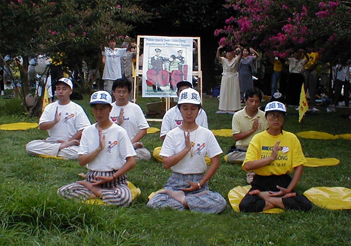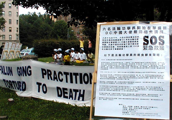 图片:6名大法弟子在中国驻华盛顿大使馆前绝食请愿